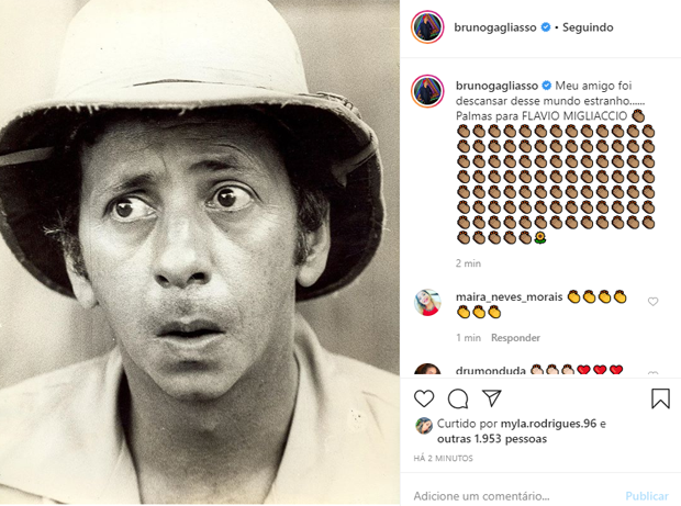 Bruno Gagliasso, ator: "Meu amigo foi descansar desse mundo estranho...... Palmas para Flávio Migliaccio."