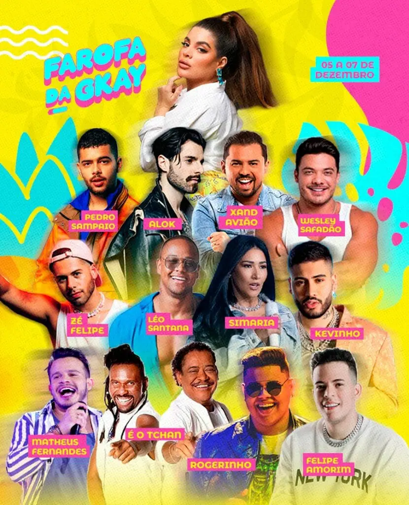Como se já não bastasse, a humorista ainda anunciou que quem recebeu o convite para participar da Farofa da Gkay, não precisará ir ao aeroporto, visto que um avião fretado pela própria foi reservado para os convidados. Para os shows, Anitta, Pabllo Vittar, Luísa Sonza, Ivete Sangalo e entre outros são nomes confirmadíssimos como atrações.