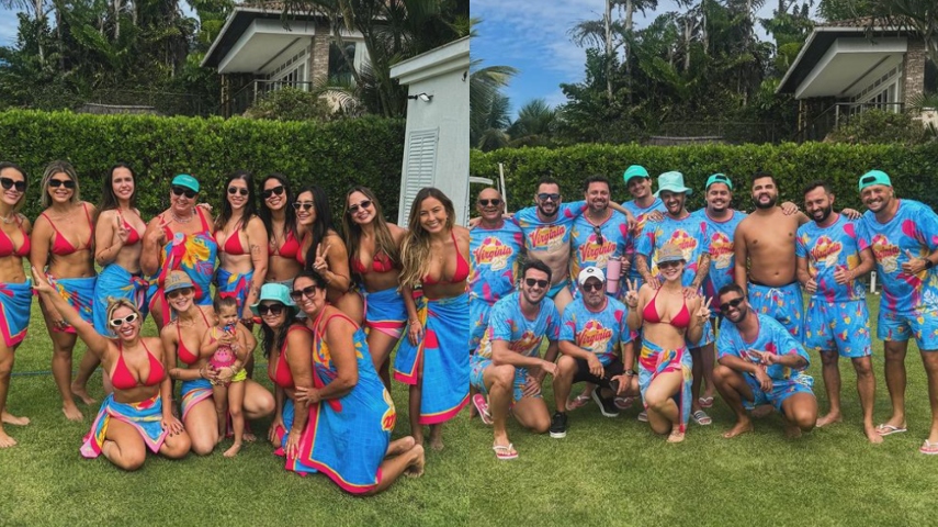 Virgínia mostrou os convidados da festa vestindo um “abadá” com seu nome, além de peças como bermuda também personalizada com as cores do evento. Na web os internautas apontaram as semelhanças, e acusaram a loira de copiar a famosa festa promovida por Gessica Kayane
