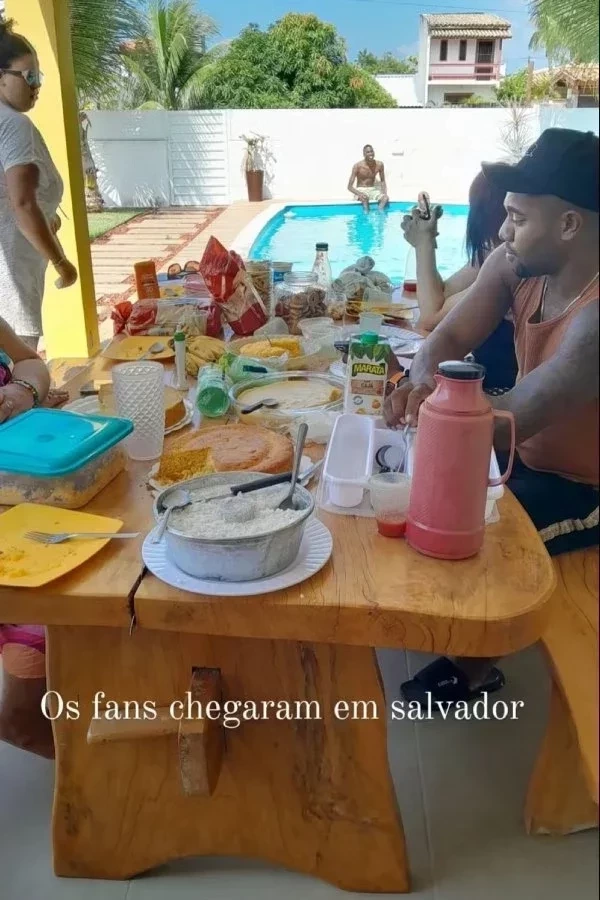 Durante a tarde, o agora milionário preparou pessoalmente um churrasco à beira da piscina para confraternizar. "Eles fizeram uma vaquinha, pagaram suas passagens, compraram suas comidas e vieram para Salvador me visitar", contou Davi nas redes sociais.