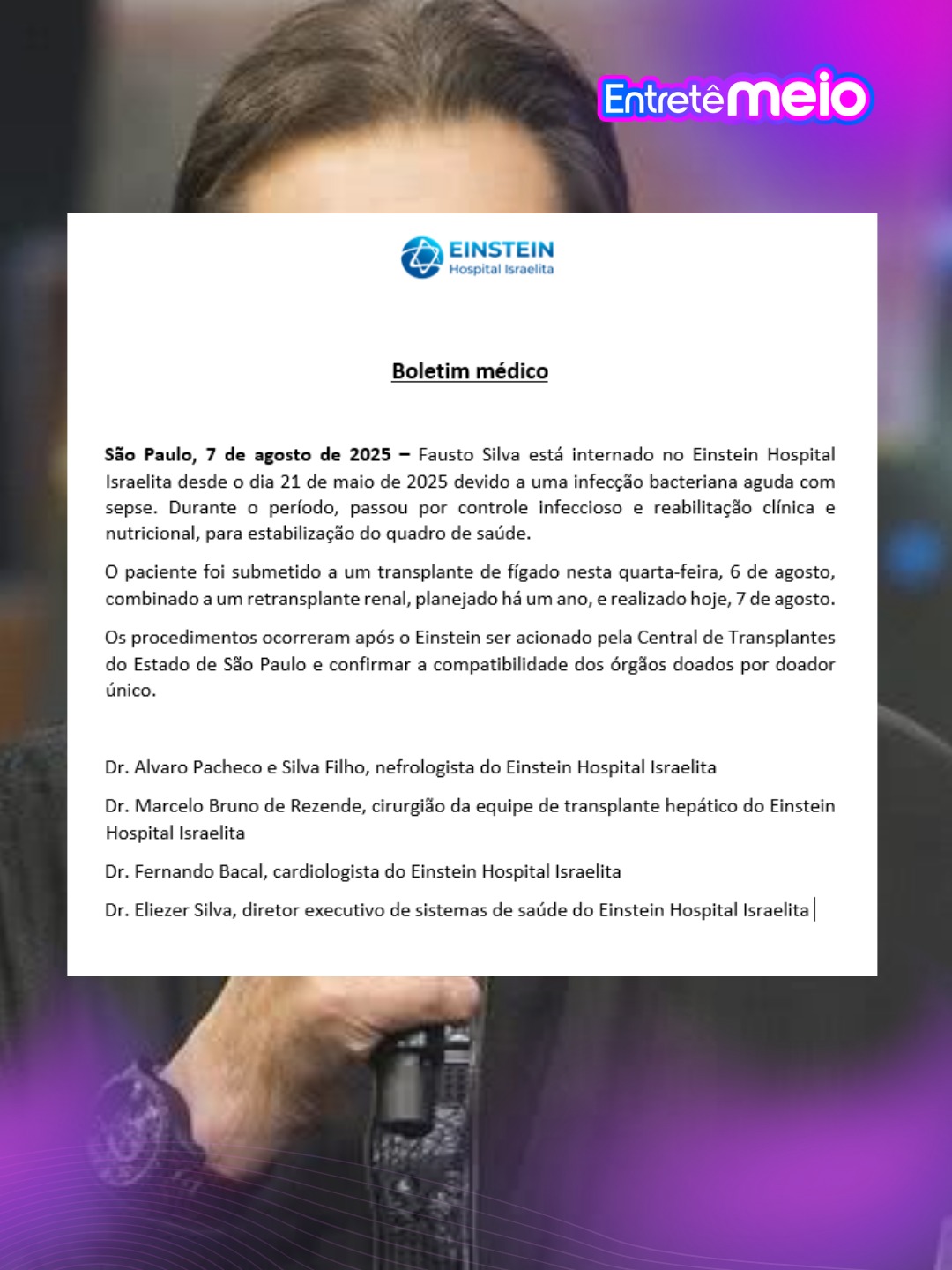 O apresentador Fausto Silva passou por um transplante de fígado e retransplante renal, informou o boletim médico divulgado na noite desta quinta-feira (7) pelo Hospital Albert Einsten, em São Paulo.