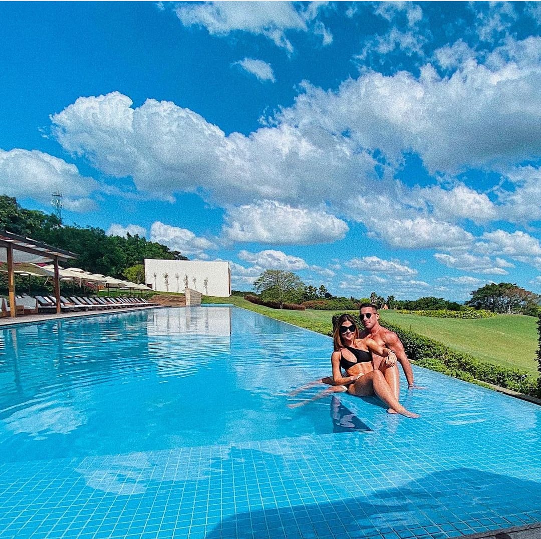 Jessyca Couto e Rodrigo Uchôa, agora noivos, isolados em resort. O pedido foi feito lá