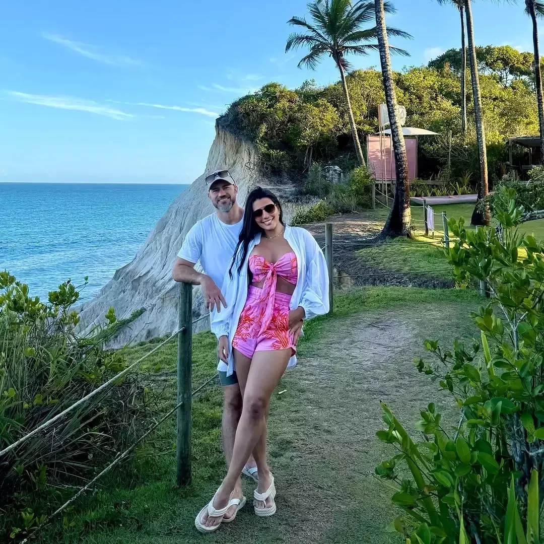 Fernanda Bande abriu o álbum de sua viagem a Trancoso, na Bahia, com o noivo, o atleta de rugby Daniel Gregg. Em alguns dos cliques, a ex-BBB aparece de biquíni fio-dental e deixa em evidências suas belas curvas.