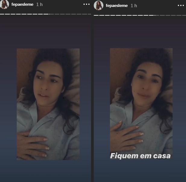 Ela ainda reiterou a importância da população ficar em casa a fim de evitar que o vírus se alastre e contagie mais pessoas. "E para piorar a gente ainda escuta essas bobagens, besteiras que o Presidente fala. Então gente continuem lavando as mãos, se cuidando e não ouvindo o Presidente, por favor. Muitas dores na barriga e vômito e eu achando que estava acabando, mas está. Está acabando.Hoje é meu décimo quarto dia de confinamento, mas daqui dois dias que eu completo os 14 dias desde quando eu senti o primeiro sintoma. Vamos nessa", disse.