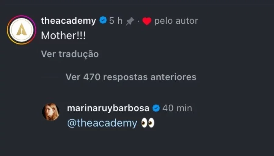 A atriz Fernanda Torres, que concorre ao Oscar de Melhor Atriz por seu papel em Ainda Estou Aqui, foi elogiada em um comentário pelo perfil da Academia de Artes e Ciências Cinematográficas de Hollywood, nesta quarta-feira (26). A conta oficial da premiação deixou um comentário chamando a brasileira de mãe.