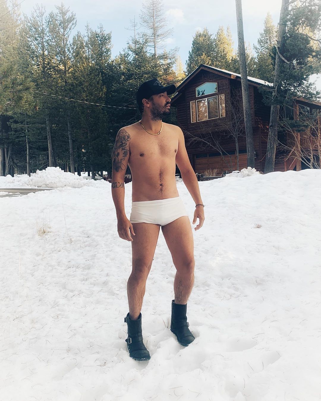 O cantor Fernando Zor, da dupla com Sorocaba, publicou uma foto ousada em estilo #TBT para expressar sua saudade pela neve. No clique, o sertanejo aparece usando uma sunga branca em meio a um cenário gelado.