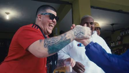 Famoso por cantar pagode e bombando no país pelo "Pagonejo" em parceria com Felipe Araújo, "Atrasadinha", Ferrugem lançou um clipe cantando rap e trapfunk no meio do Complexo da Penha. Nas imagens, Ferrugem aparece bebendo cerveja em um bar da comunidade e em clima de romance com uma modelo em uma das vielas do local. A música termina em um "Baile da gaiola".