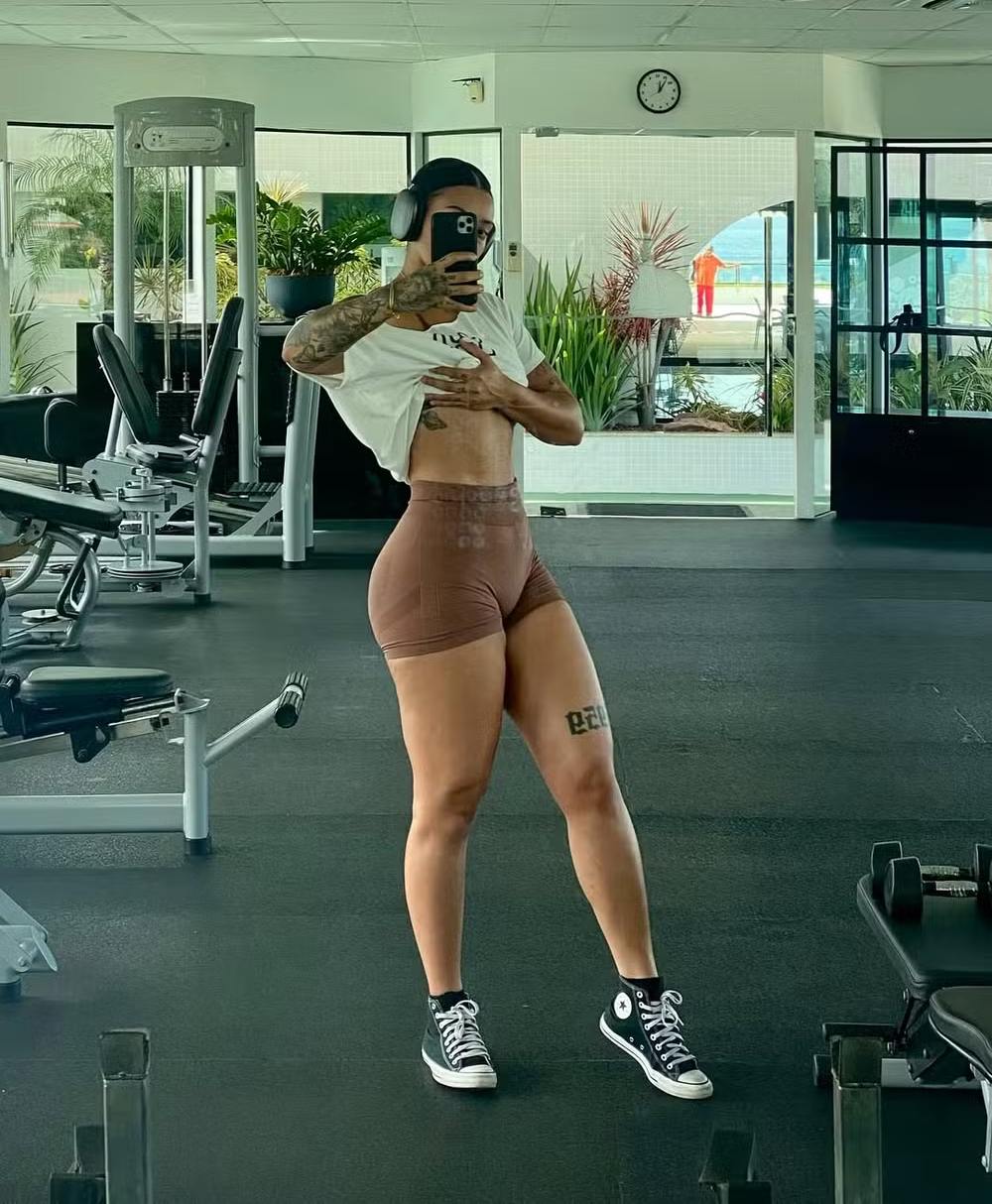 Camilly Victoria exibiu seu shape durante treino nesta sexta-feira (25). A filha de Carla Perez e Xanddy estava com uma camiseta branca, que tirou em seguida, ficando apenas com seu look fitness composto por top e micro short.