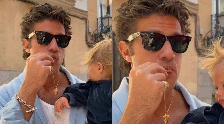 Ana, filha mais nova de Chay Suede e Laura Neiva, chamou atenção ao aparecer em vídeo publicado pelo ator nesse sábado (14) durante uma viagem a Madri, na Espanha. No registro, a menina aparece no colo do pai, usando look azul escuro e com os cabelos loiros ao vento.