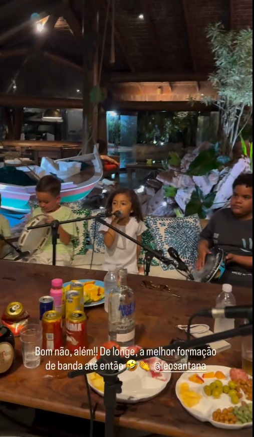 Em um vídeo publicado por um amigo dos pais, a menina aparece animada ao pegar o microfone e cantar “Maquininha de Fitinha”, um dos principais sucessos do pai na folia de 2026. No registro, Liz também se arrisca na música “Desliza”, outro hit recente do cantor.