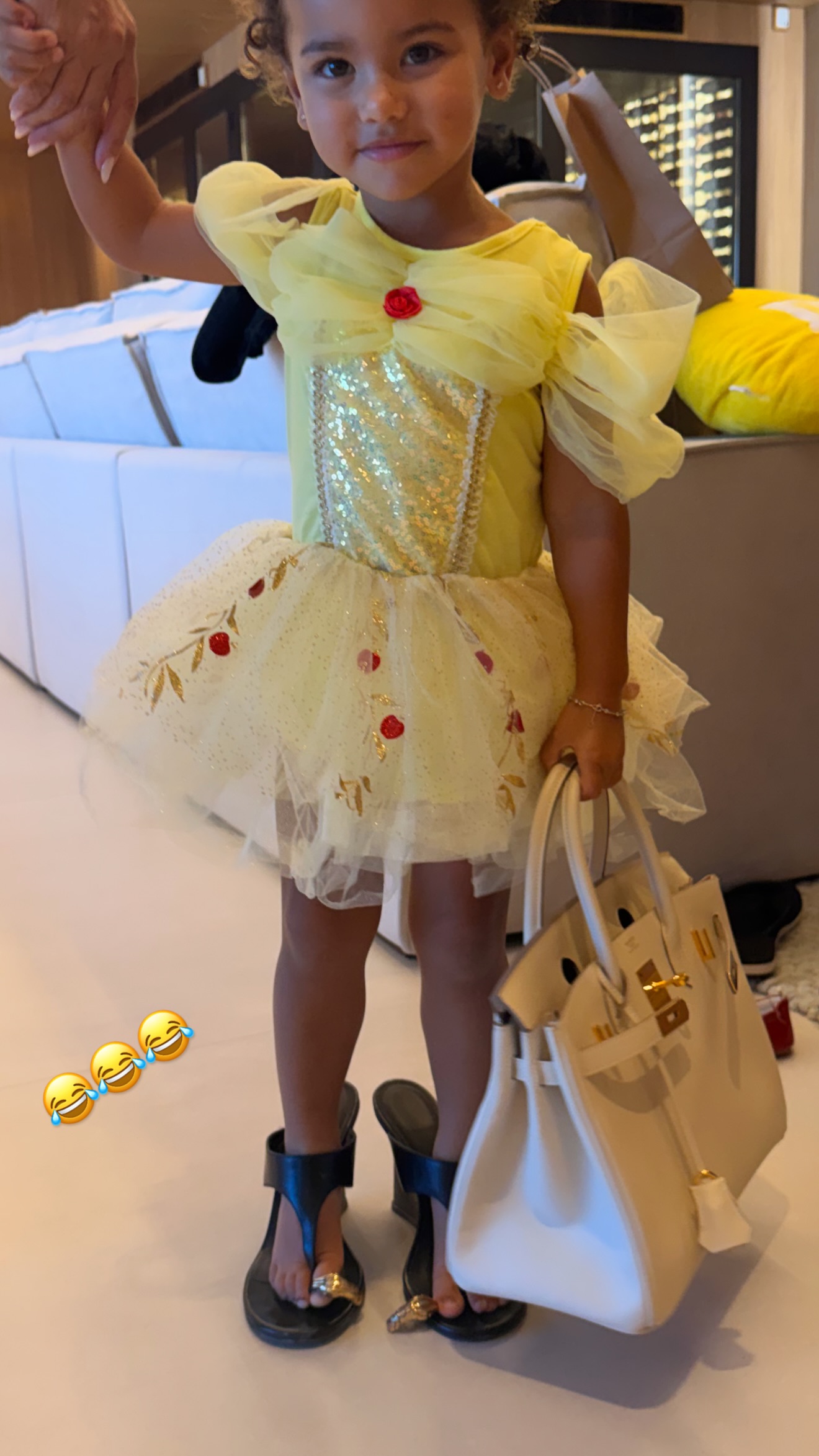 Filha de Neymar e da influenciadora Bruna Biancardi, a pequena Mavie, de dois anos, encantou os seguidores ao “invadir” o closet da mãe. Nos registros publicados nas redes sociais, a menina aparece fantasiada de princesa Bela, usando um salto alto preto e uma bolsa de luxo da Hermès, modelo Birkin, avaliada em cerca de R$ 130 mil.