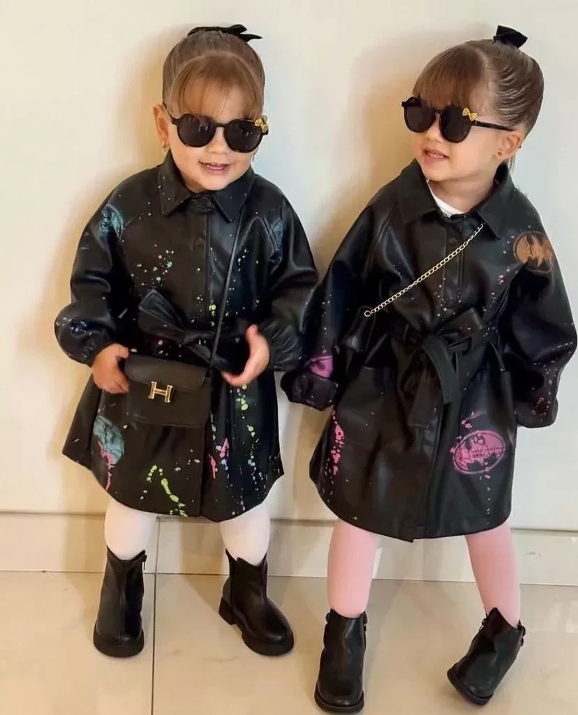 A foto foi compartilhada no Instagram da influenciadora, onde as meninas aparecem vestidas com muito estilo. O look é composto por um sobretudo, meia-calça, bota e óculos de sol, com o visual sendo complementando com a bolsa de grife.