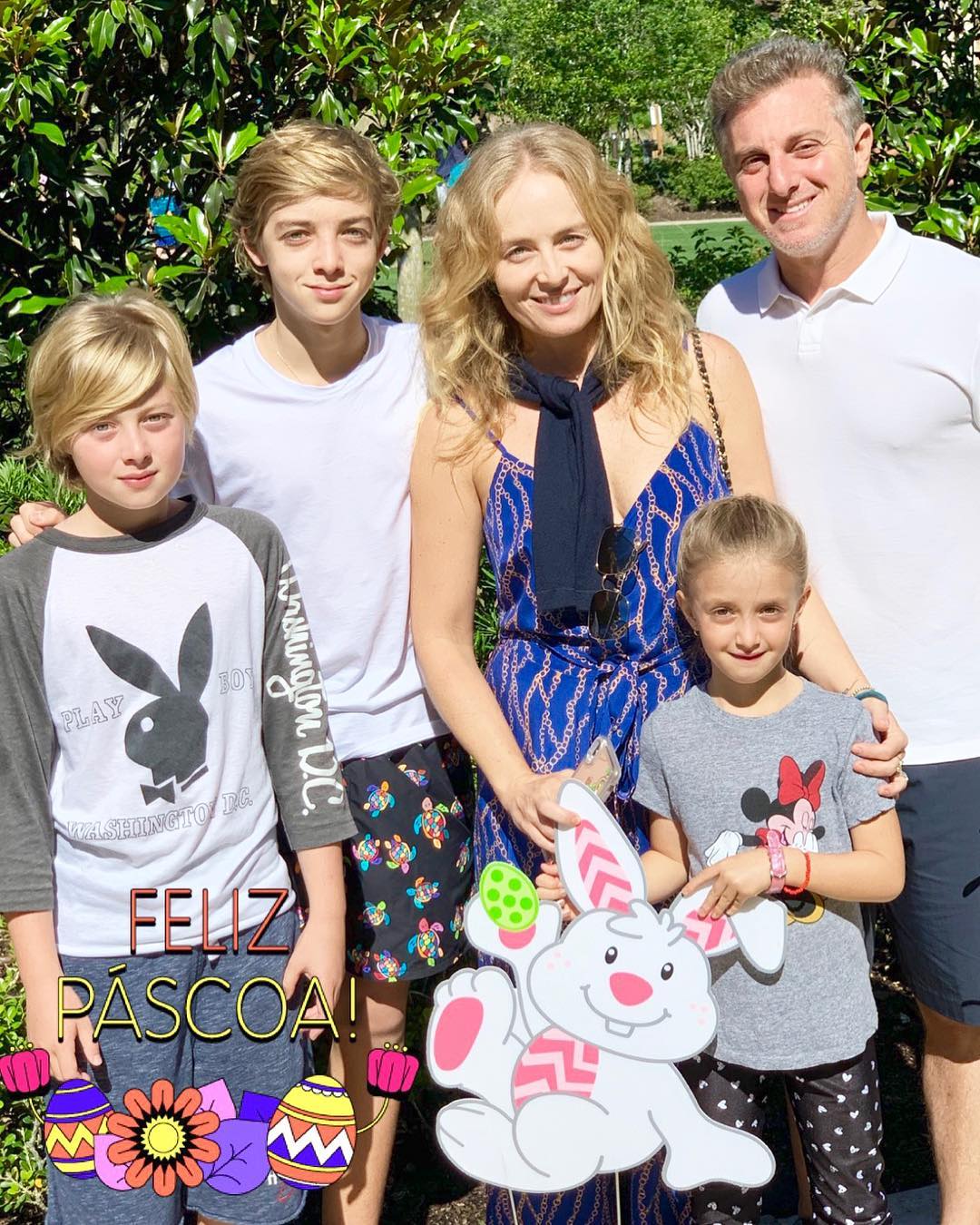 No sábado, no Instagram, o apresentador registrou o passeio da família em um momento em que observavam uma baleia. O apresentador interage com os três filhos. "Olha Joaquim, olha Beni, está vendo, Eva? Está mais pertinho, bem devagarzinho e está super calminha, hein", fala Luciano em um vídeo.