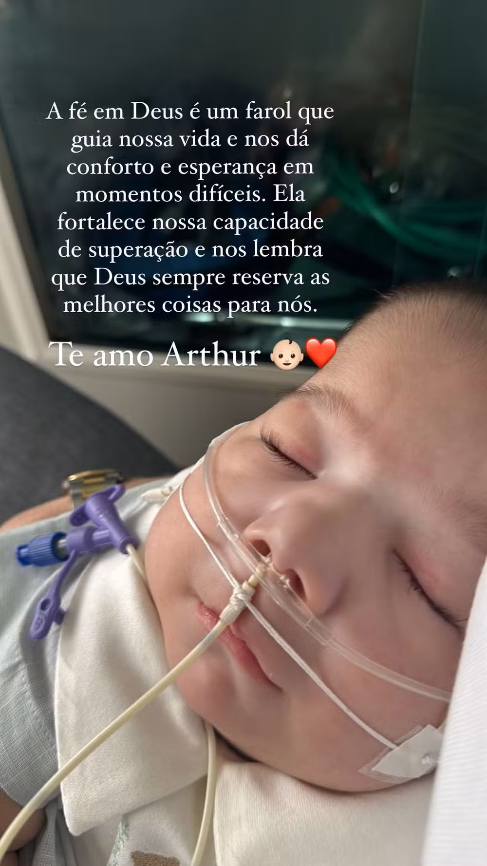 “Sempre faça tudo com muito amor e com muita fé em Deus, que um dia você chega lá. De alguma maneira você chega lá. Nosso milagre Arthur, em casa.”, completou.
