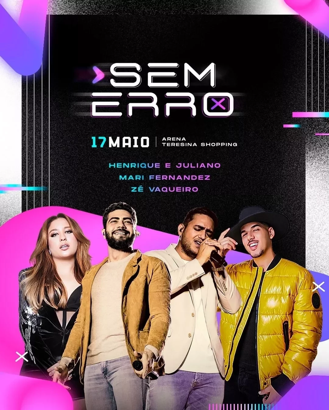 Mari Fernandez, Zé Vaqueiro e a dupla Henrique e Juliano são atrações da grande festa ''Sem Erro'', que acontece nesta sexta-feira (17), na Arena Teresina Shopping.