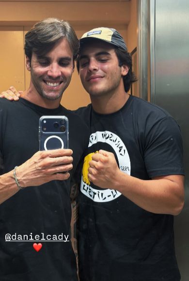O clique foi publicado nos stories de Marcelo e mostra pai e filho em frente ao espelho. No registro, Daniel Cady aparece com um visual básico, usando camiseta preta e acessórios discretos. Já o adolescente apostou em um look casual, com camiseta estampada e boné em tons neutros.