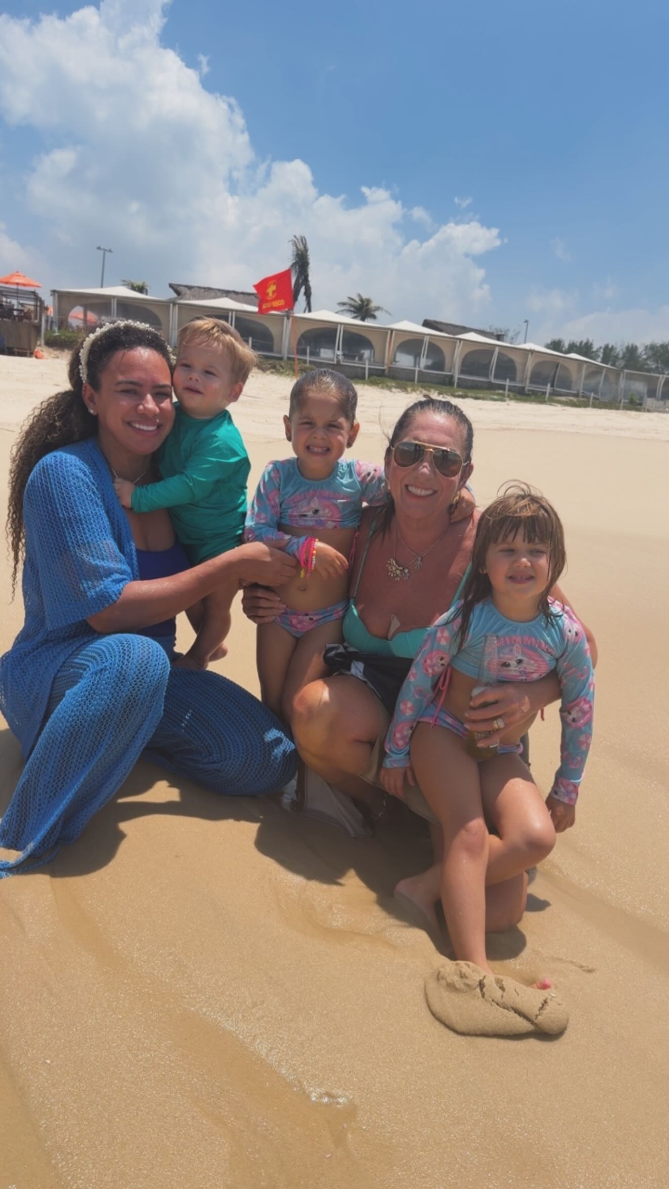 Filhos de Virginia Fonseca e Zé Felipe curtem dia de praia com a avó Margareth Serrão. Foto: Reprodução