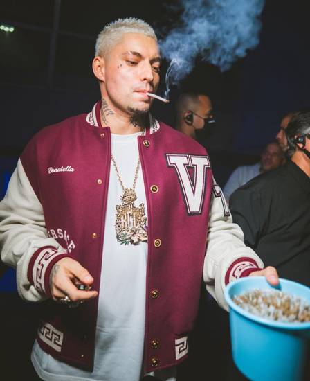 Em imagens postadas nas redes sociais pelo próprio artista, ele segura um balde azul com o que parece ser cigarros da droga dentro.