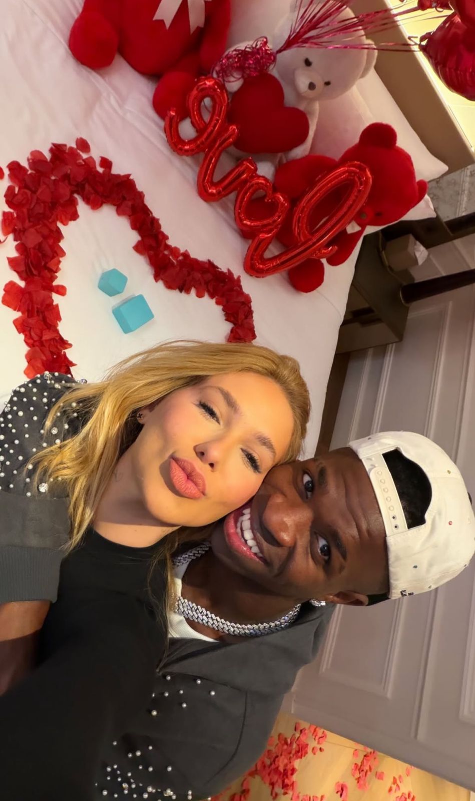 Vini Jr. e Virginia Fonseca assumiram oficialmente o namoro nesta terça-feira (28). Nas imagens, os dois aparecem em um quarto com cama decorada com pétalas de flores, buquês de rosas vermelhas, balões em formato de "love" e corações, e joias de luxo.