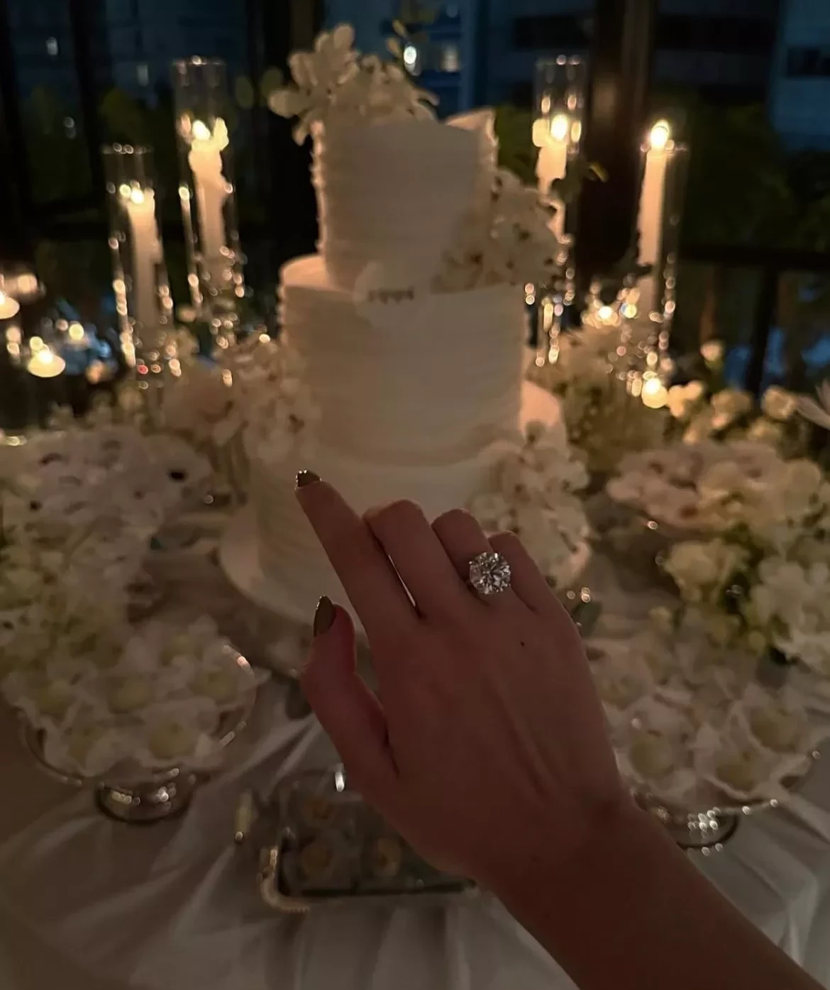 Além do anúncio repentino, outro detalhe que chamou a atenção do público foi o luxuoso anel de noivado que ela recebeu do bilionário. A joia é toda feita em ouro branco com 9 quilates, está avaliada em mais de R$5 milhões no site da marca Glamira. A peça única conta com um diamante de 0.3 quilates e mais 35 pedras de brilhante encrostadas.