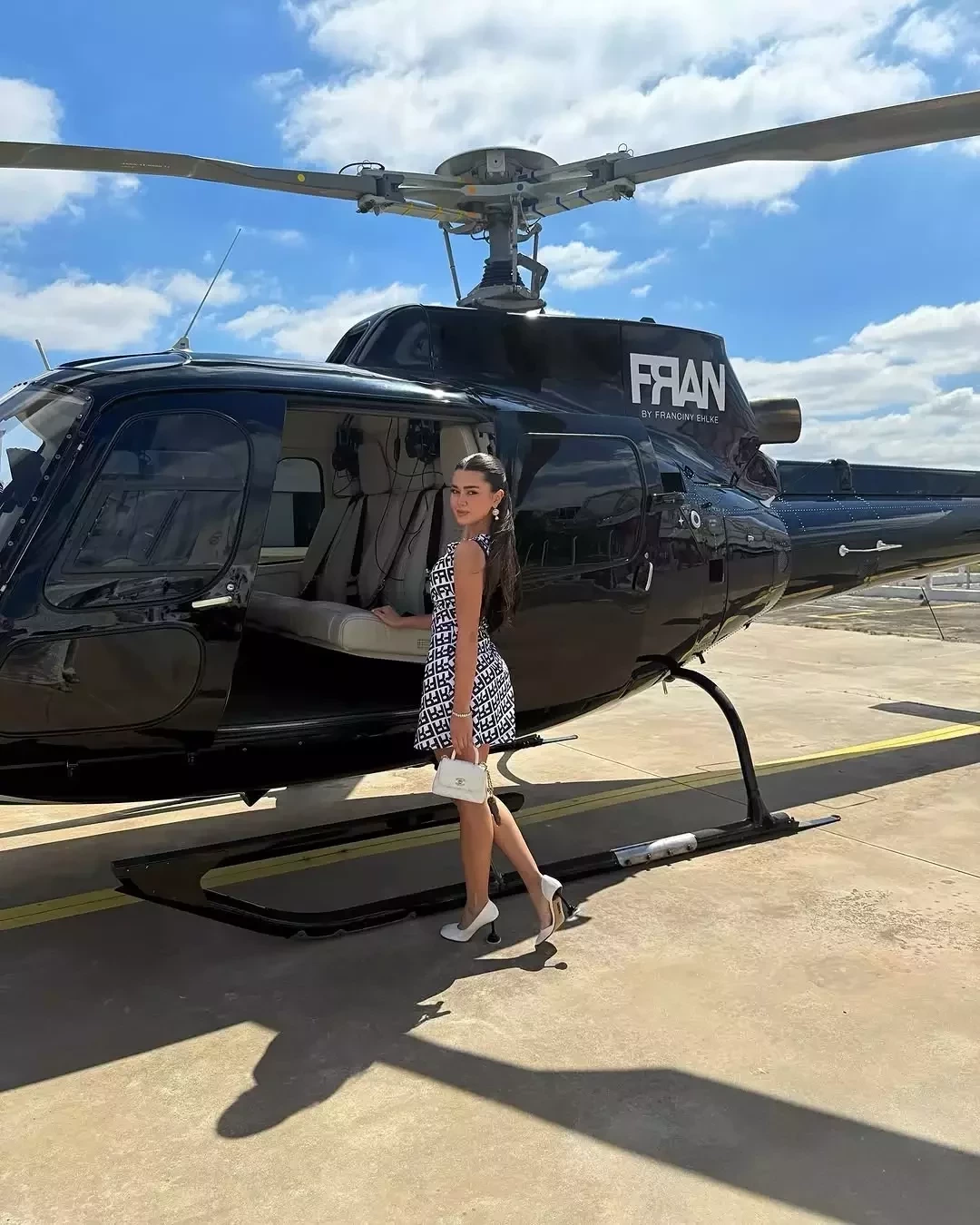 A influenciadora Franciny Ehlke, de 25 anos, fez sua primeira viagem em seu helicóptero nesta sexta-feira (21). O presente luxuoso foi dado pelo namorado, o empresário Tony Maleh, de 36 anos.