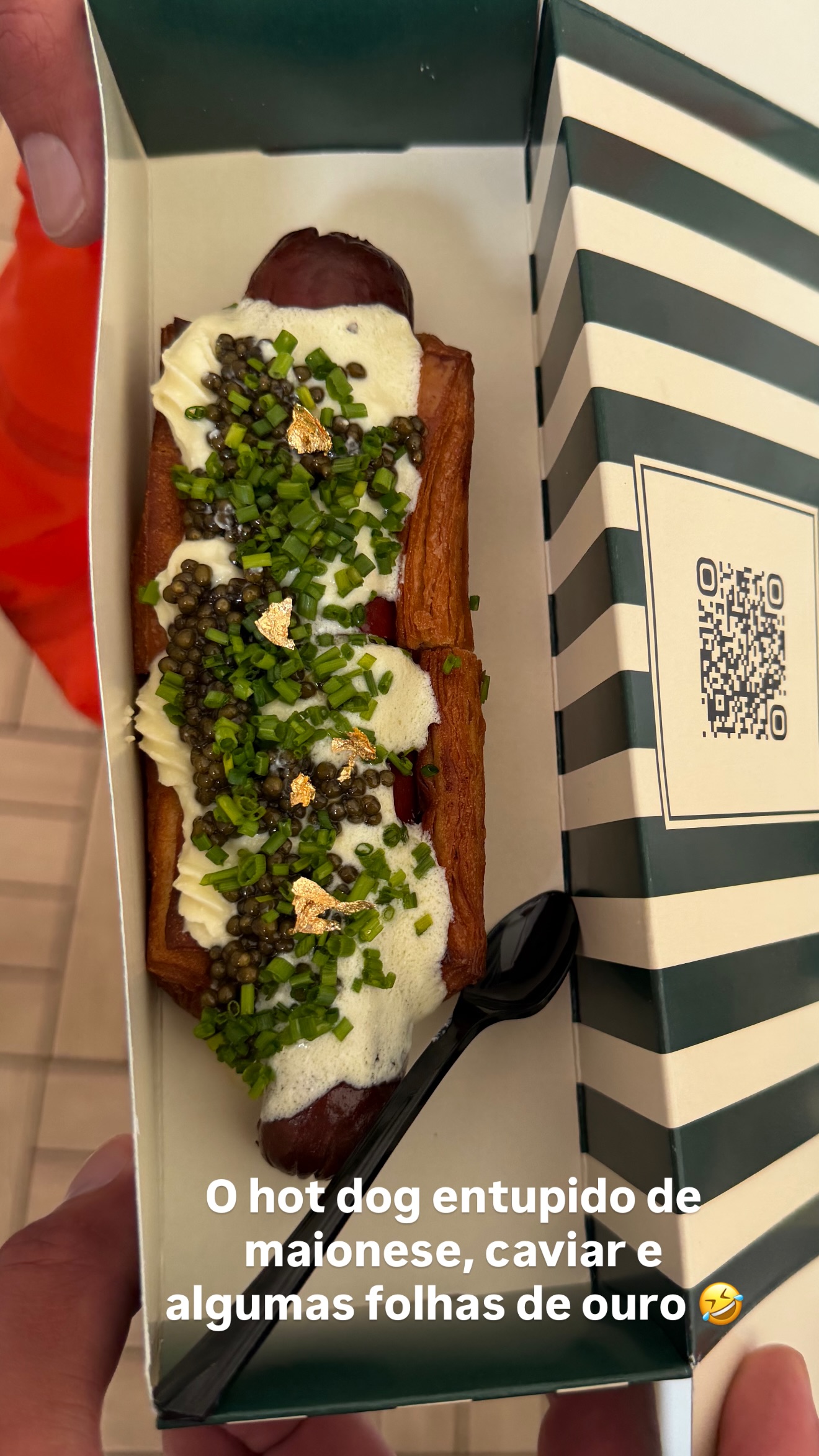 Franciny Elke paga R$ 500 em cachorro-quente com caviar e ouro nos Estados Unidos |