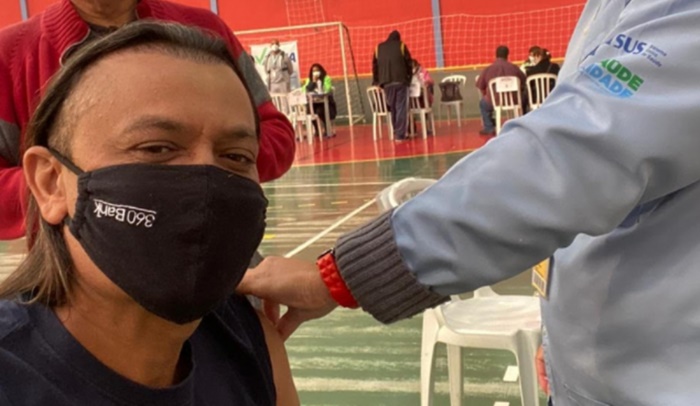 Frank Aguiar vibra ao tomar primeira dose da vacina contra a Covid-19 |
