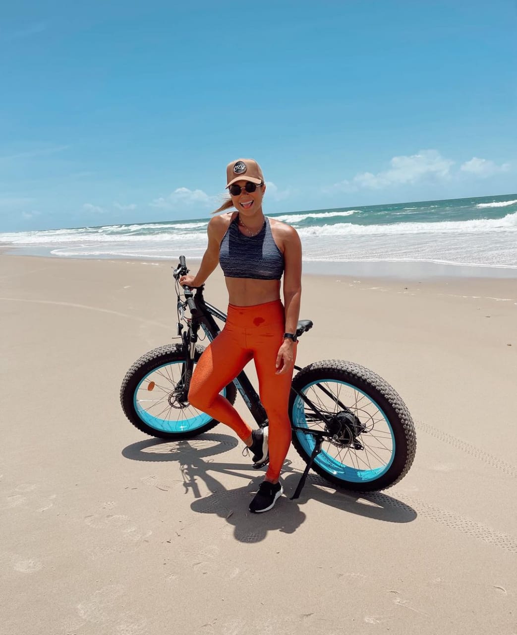 Gabi durante ciclismo na praia (Foto: reprodução Instagram)