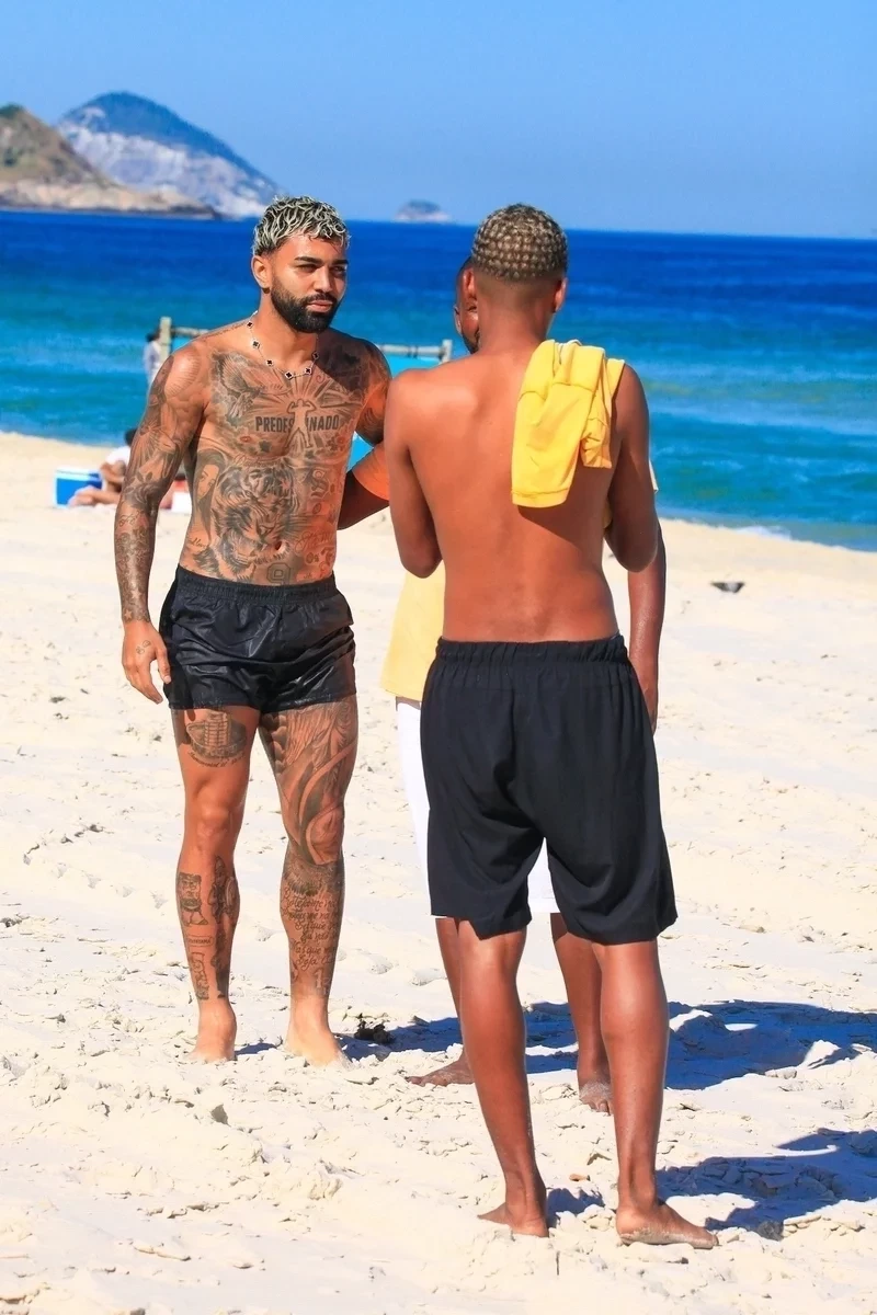 Nesta segunda-feira (17) Gabigol aproveitou o dia de folga para curtir uma praia e renovar o bronze. O jogador do Flamengo foi flagrado exibindo o corpão ao sair do mar da Barra da Tijuca, zona Oeste do Rio de Janeiro.