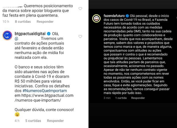 Algumas delas deram o aviso ao responder comentários de seguidores, que pediam um retorno sobre o assunto.