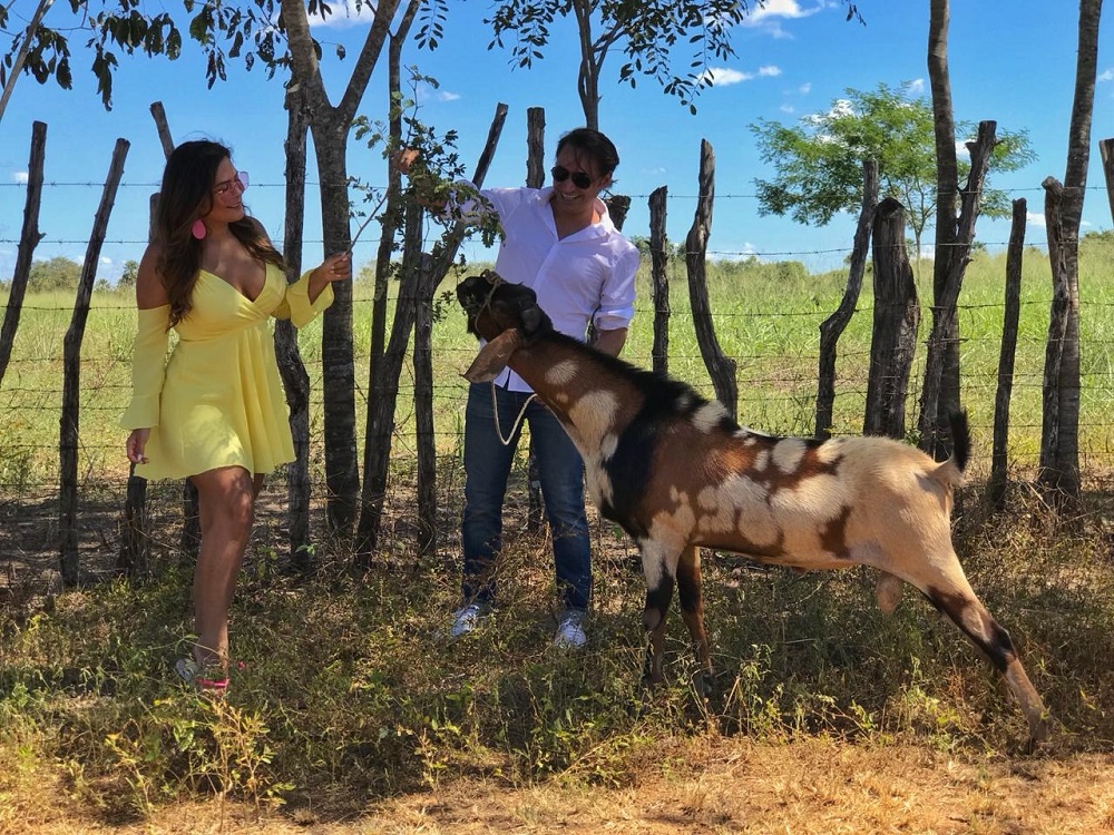 Geisy Arruda posou decotada durante gravação ao lado do amigo e cabeleireiro Karlos Wendell na fazenda Jacu, mostrando os bichos e as curiosidades do interior do Piauí. Eles se conheceram em Portugal, onde Karlos tem um salão de beleza e um programa na internet.