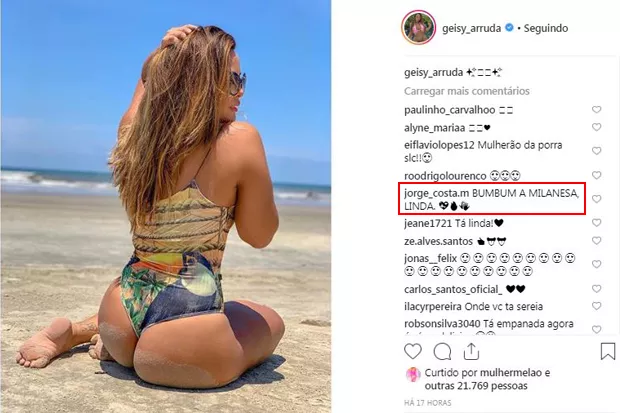 Nos comentários, os fãs deixaram vários elogios para Geisy, alguns, inclusive, incomuns, como: "Bumbum à milanesa".