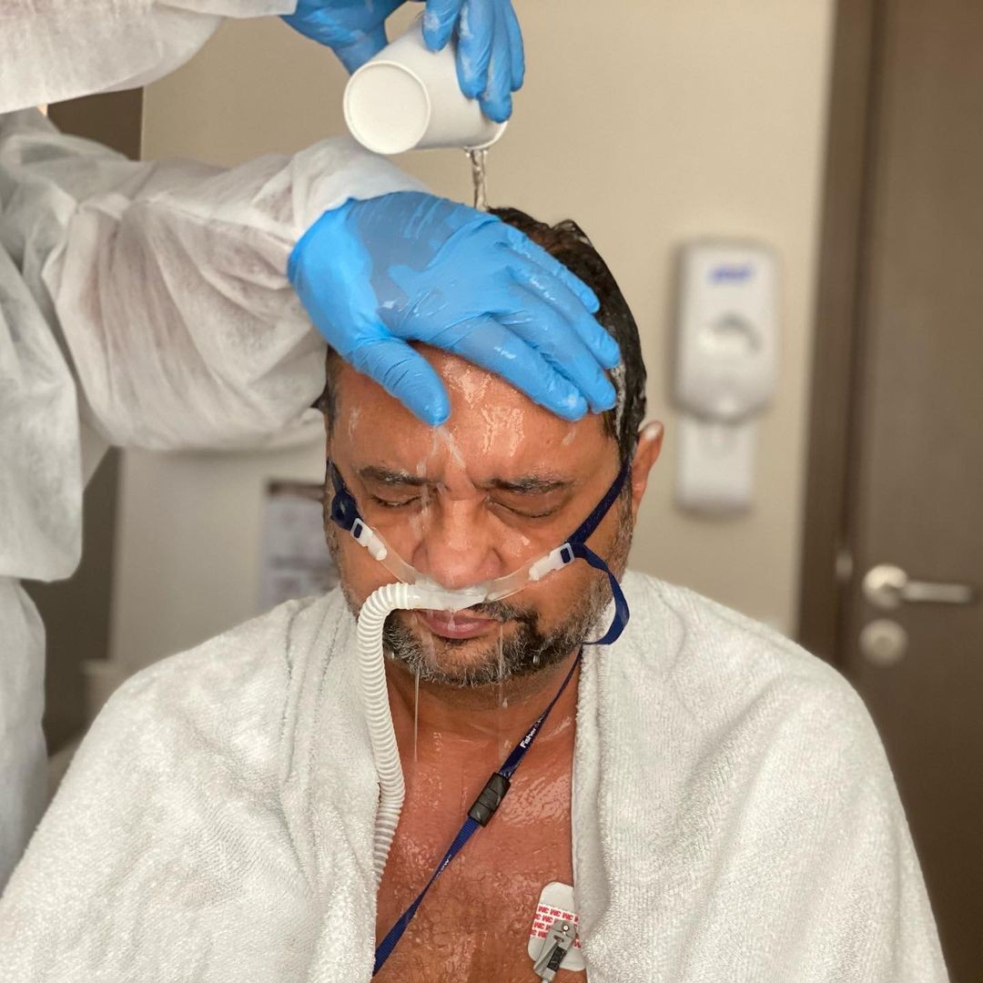 Ele lembrou que o tempo todo precisava de auxílio para respirar. "Alegria, alegria e muita canseira, parecia que o ar sumia... Tudo no oxigênio. Aí vinha o treino que me deram lá de fisioterapia respiratória... Demorava mas a batedeira passava", contou.