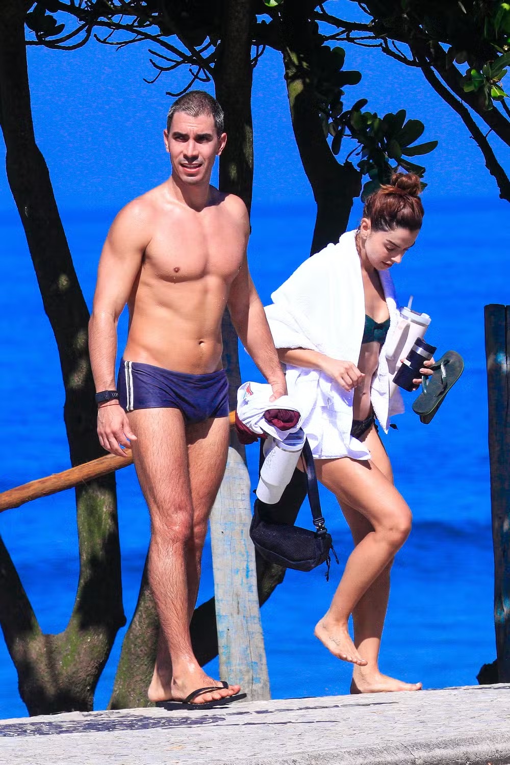 Giovanna Lancellotti curte dia de praia com o marido na Barra da Tijuca |