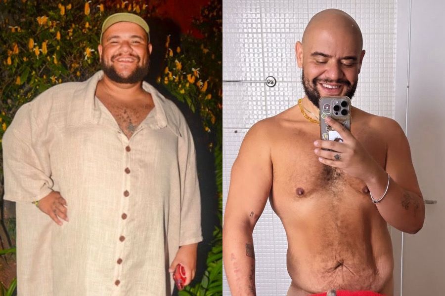 O antes de depois de Gominho: apresentador perdeu 61 kg Foto: Agnews/ Redes Sociais