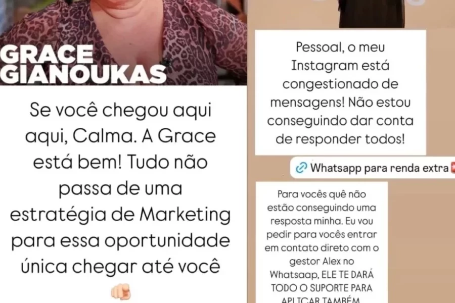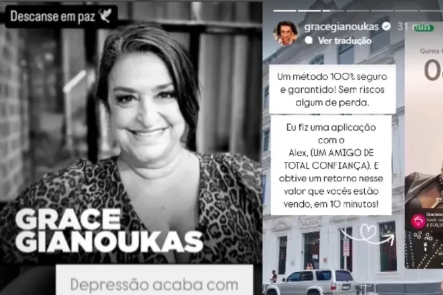 Nesta quinta-feira (19) a atriz Grace Gianoukas teve seu perfil nas redes sociais hackeado por criminosos, que invadiram a conta e fizeram uma publicação falsa anunciando a morte da artista. Em seguida, eles usaram os storys para desmentir a notícia e tentar aplicar golpes financeiros.