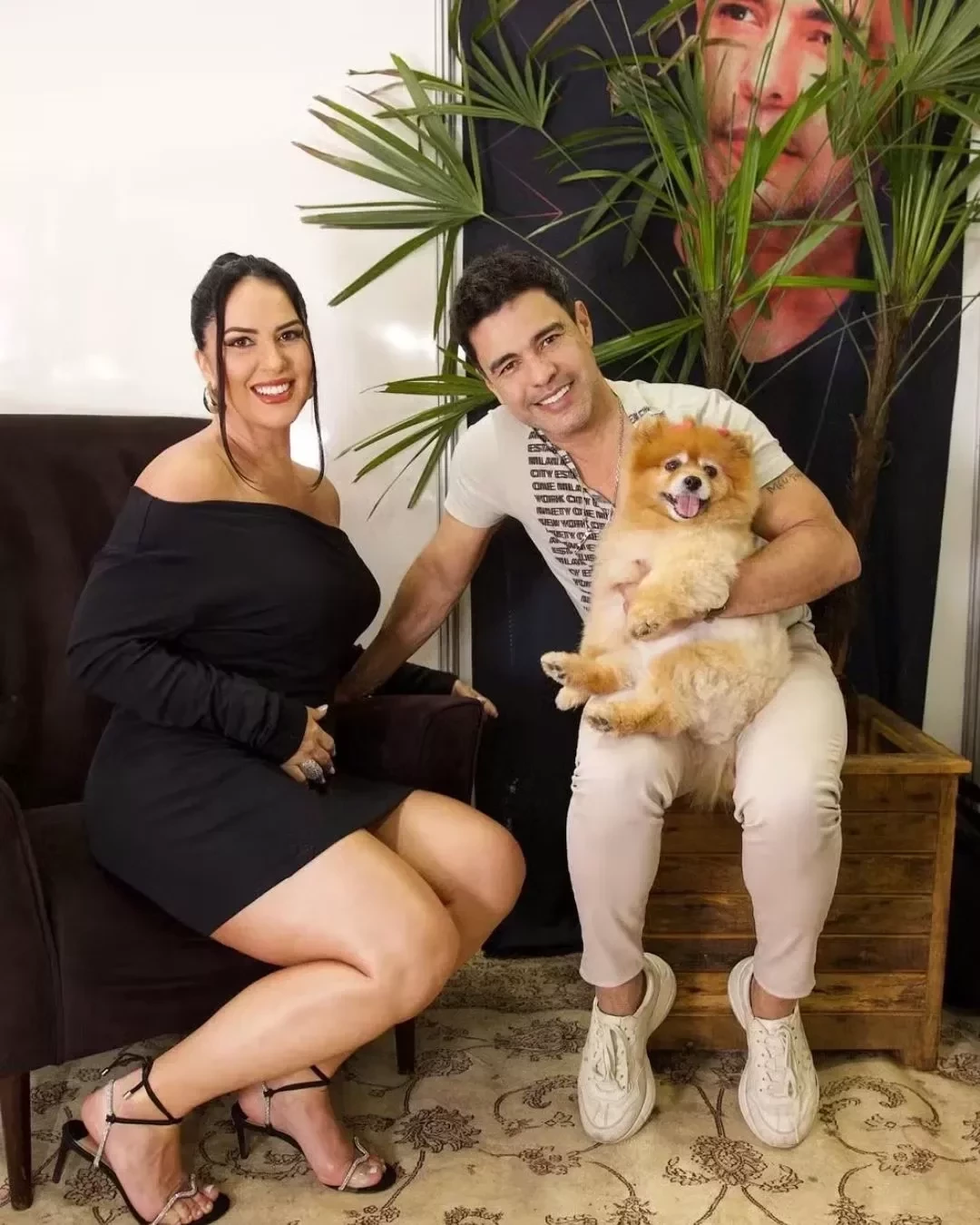 Graciele Lacerda, aos 43 anos, exibiu sua barriguinha de gravidez em fotos compartilhadas neste domingo (15). A esposa de Zezé Di Camargo, de 62 anos, que está gestante de quatro meses de sua primeira filha com o cantor, postou imagens ao lado do marido nos bastidores de um show dele realizado em Icaraíma, no Paraná.