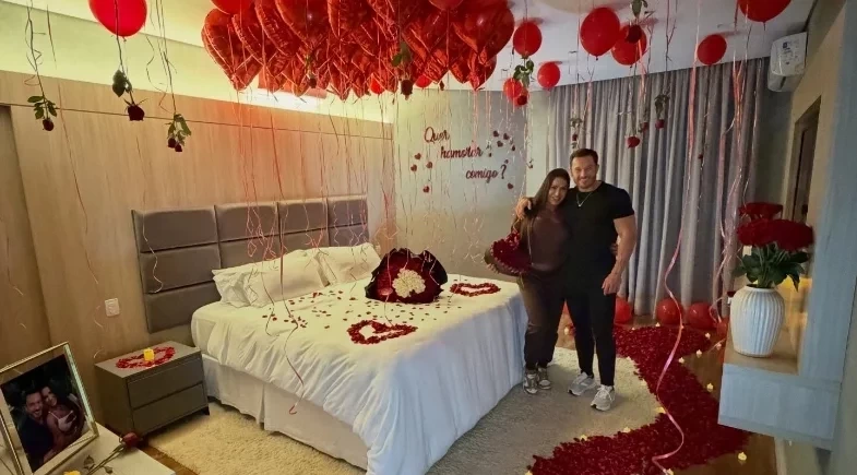 Gracyanne Barbosa foi surpreendida com um pedido de namoro feito por Gabriel Cardoso no último domingo (25). O empresário preparou um momento romântico, com flores, pétalas e velas espalhadas pelo quarto, e oficializou o relacionamento com a influenciadora. Nas redes sociais, a ex-BBB compartilhou fotos da surpresa e celebrou o momento: “Obviamente, disse sim”.