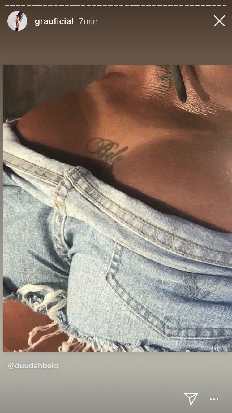 Gracyanne Barbosa mostrou o detalhe de sua tatuagem em homenagem à Belo nesta quarta-feira (18). A musa compartilhou um clique do seu cóccix e arrancou suspiros dos fãs. Uau!