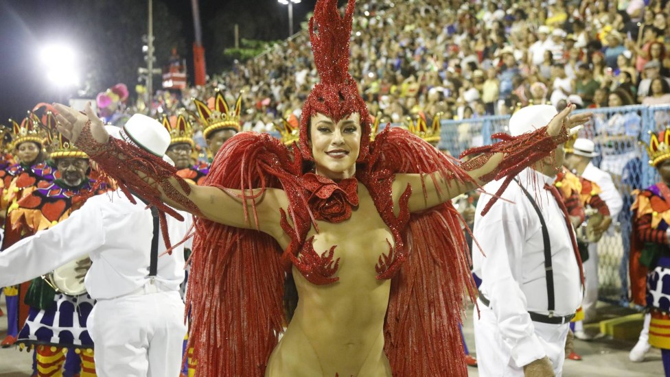 Rainha de bateria da Grande Rio, a atriz Paolla Oliveira encantou o público com fantasia inspirada na Pombagira, espécie de Exu feminino, entidade transgressora e insubmissa. Ao longo da avenida, Paolla se curvava para trás e ria como a Pombagira.