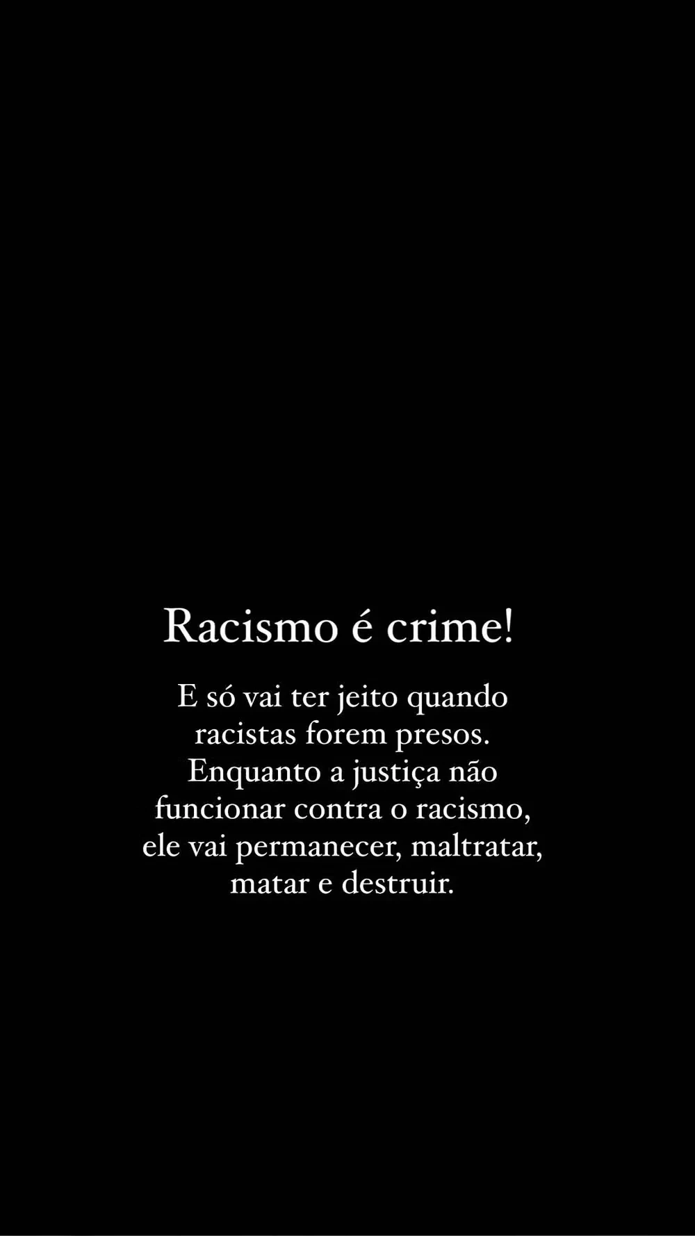 “Racismo é crime! E só vai ter jeito quando racistas forem presos. Enquanto a justiça não funcionar contra o racismo, ele vai permanecer, maltratar, matar e destruir", enfatizou ela.