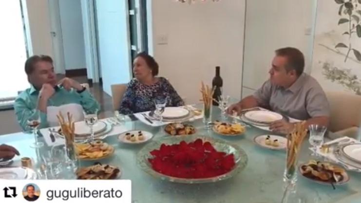 Nas imagens, Gugu apareceu na mesa de refeições com o apresentador, sua mãe, Maria do Céu, o cabeleireiro Jassa e alguns amigos.