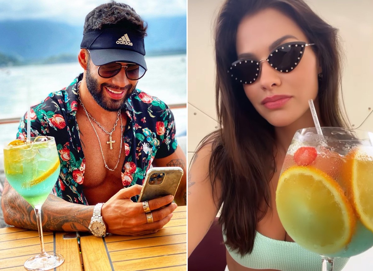 Oficialmente separados, Gusttavo Lima e Andressa Suita tem aparecido juntos com frequência. Eles chegaram a curtir o final de semana no iate do cantor em Angra dos Reis, há algumas semanas. O artista e a modelo não posaram juntos, mas postaram momentos dos passeios nas redes sociais. Além de mostrarem paisagens e brincadeiras com amigos que também estiveram no passeio, os dois postaram fotos exibindo o mesmo drink.