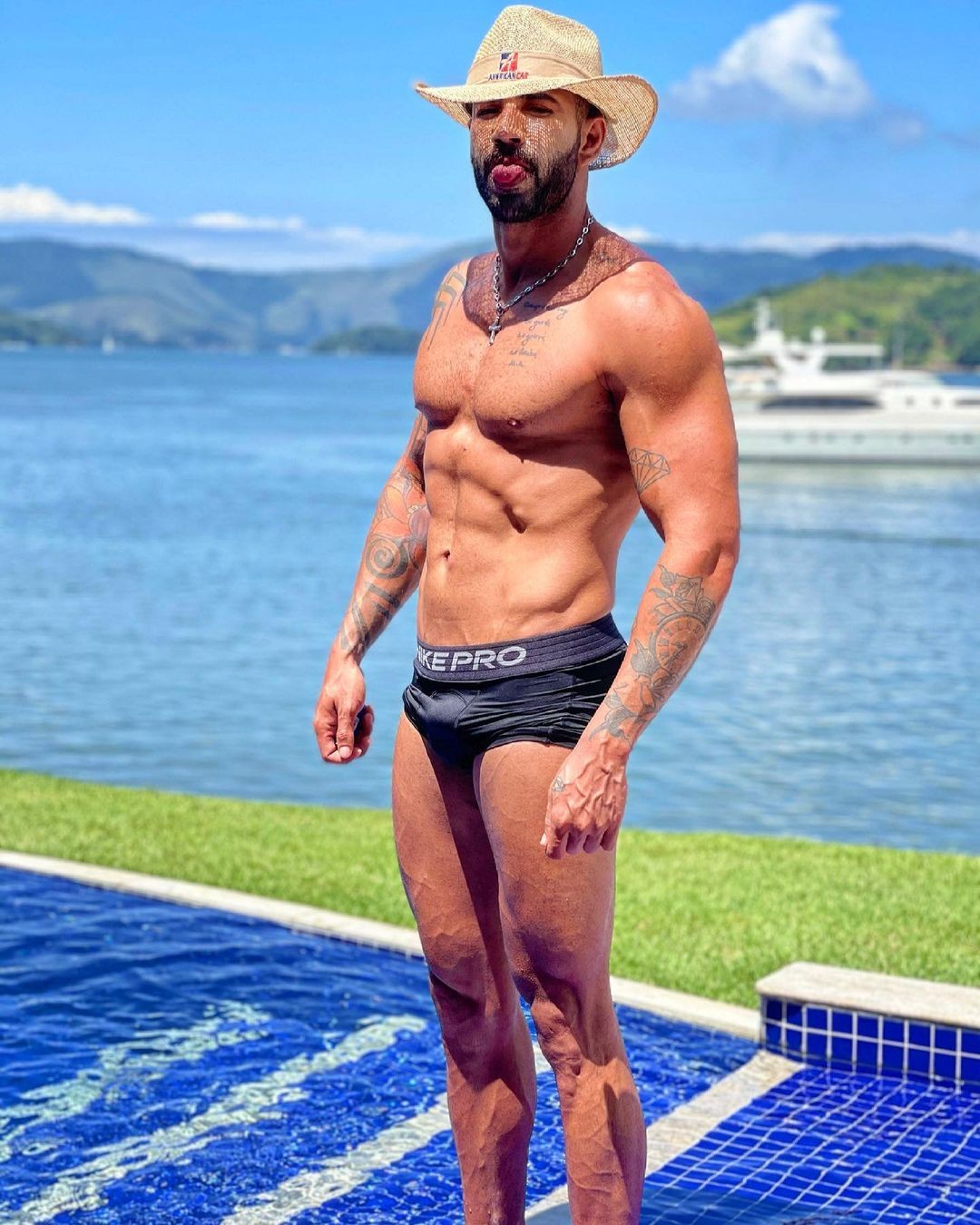 Gusttavo Lima, que está passando uns dias de férias em Angra dos Reis, no litoral sul do Rio, mostrou o tanquinho sarado e as veias saltadas em dois cliques no Instagram nesta terça-feira (16). De sunga e usando um chapéu de palha, com direito a crucifixo no peito, o cantor de 31 anos posou à beira-mar e fez careta em uma das fotos. As informações são da Quem.