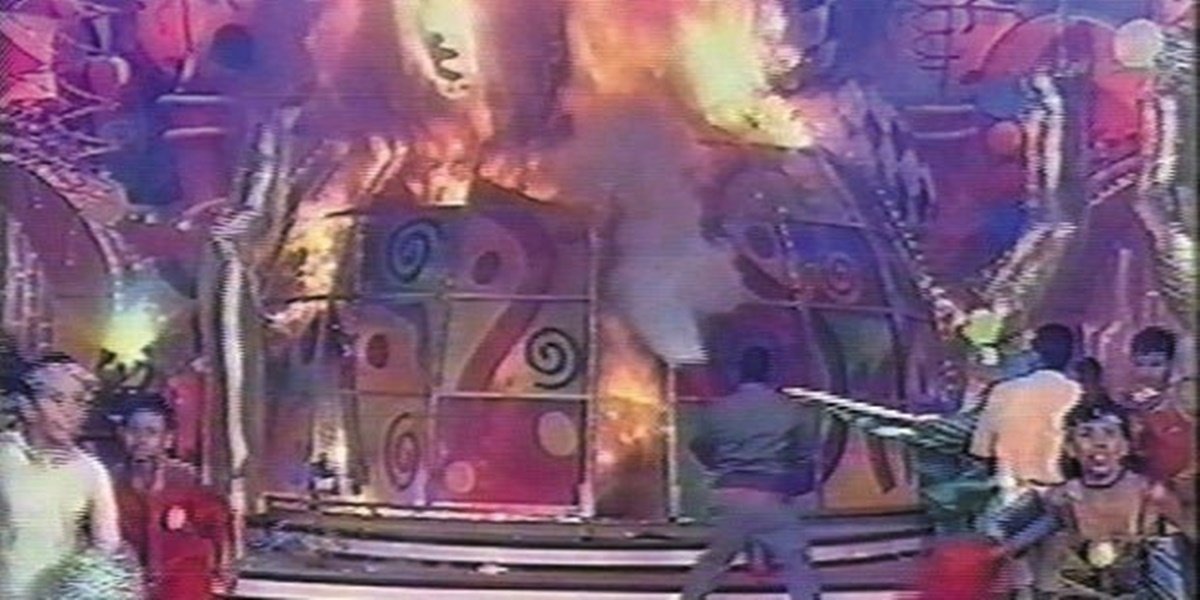 O estúdio do programa “Xuxa Park” pegou fogo, em 2001, deixando parte das pessoas que estavam no estúdio feridas - Foto: Reprodução/TV Globo