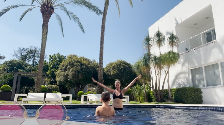Ana Hickmann curte folga na própria mansão e tamanho da piscina impressiona (Foto: Reprodução/YouTube)