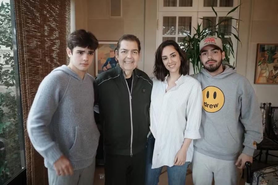 Faustão e seus três filhos Rodrigo, Lara e João Silva Foto: Reprodução/Instagram