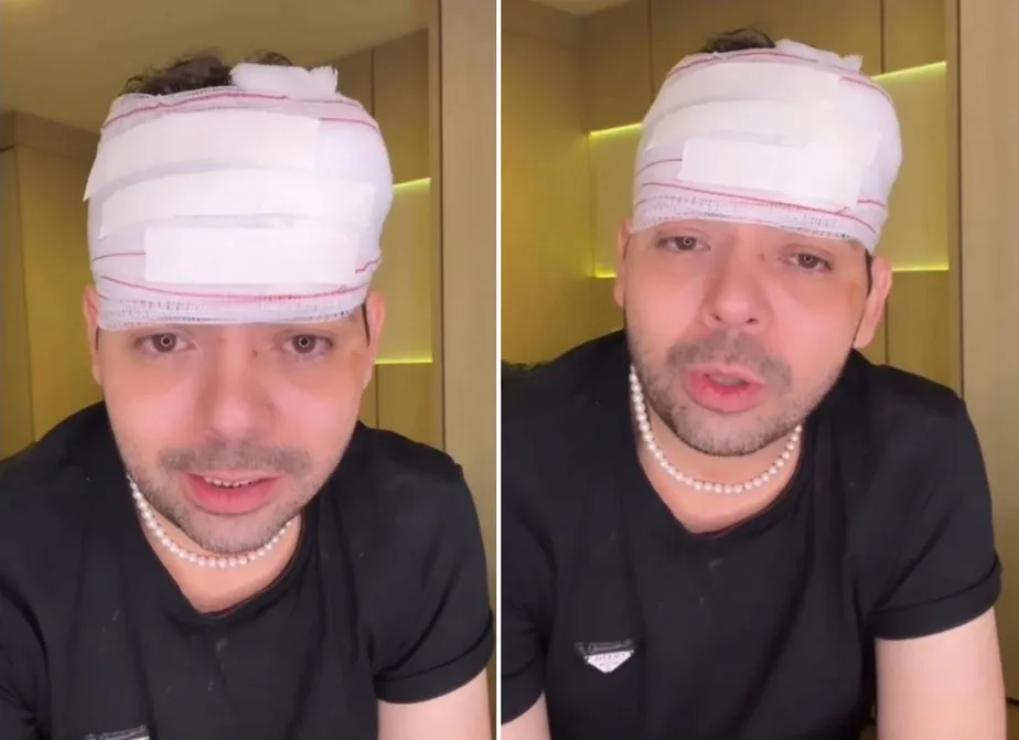 Humorista Gustavo Mendes é agredido com pedrada em tentativa de assalto (Foto: Redes Sociais)Segundo a Polícia Militar (PM), os criminosos abordaram o humorista e fingiram que estavam armados. Na ocasião, Gustavo Mendes percebeu e se negou a entregar o celular, momento em que um deles pegou uma pedra e atirou na cabeça dele.