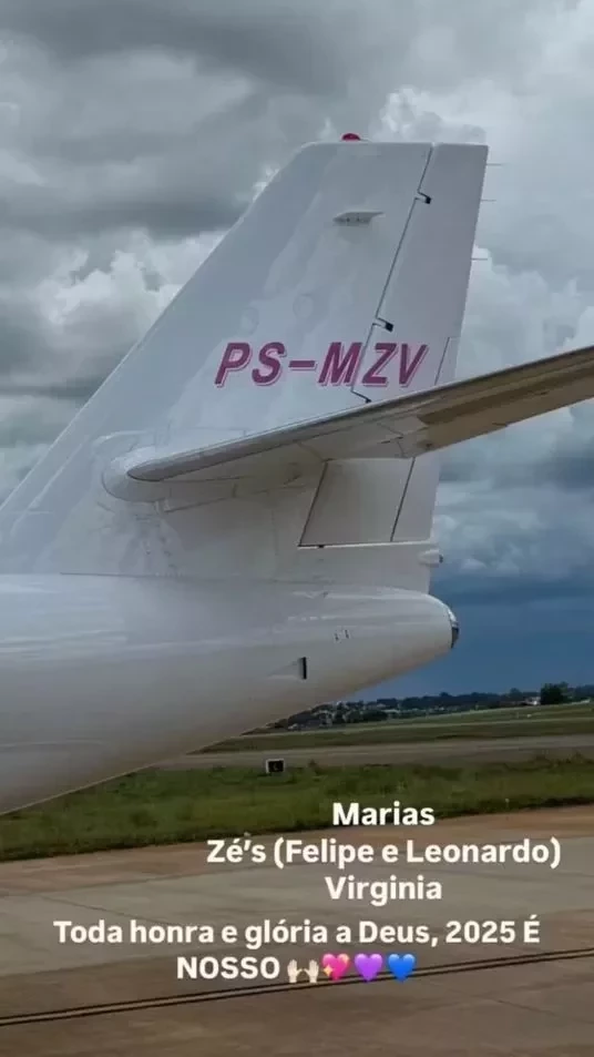 A influenciadora compartilhou com seus seguidores o significado do prefixo (PS-MZV), que identifica seu novo jato. Segundo ela, cada letra representa um membro de sua família: “Marias, Zé (Felipe e Leonardo) e Virgínia. Toda honra e glória a Deus! 2025 é nosso”, escreveu Virgínia.