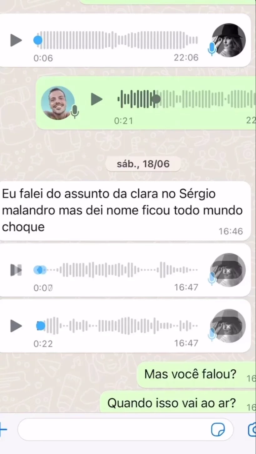 Nos áudios, é possível ouvir a apresentadora incitando que o rapaz questione a atriz sobre o que teria acontecido com seu bebê, já que, segundo ela, Klara não teria ‘matado’.